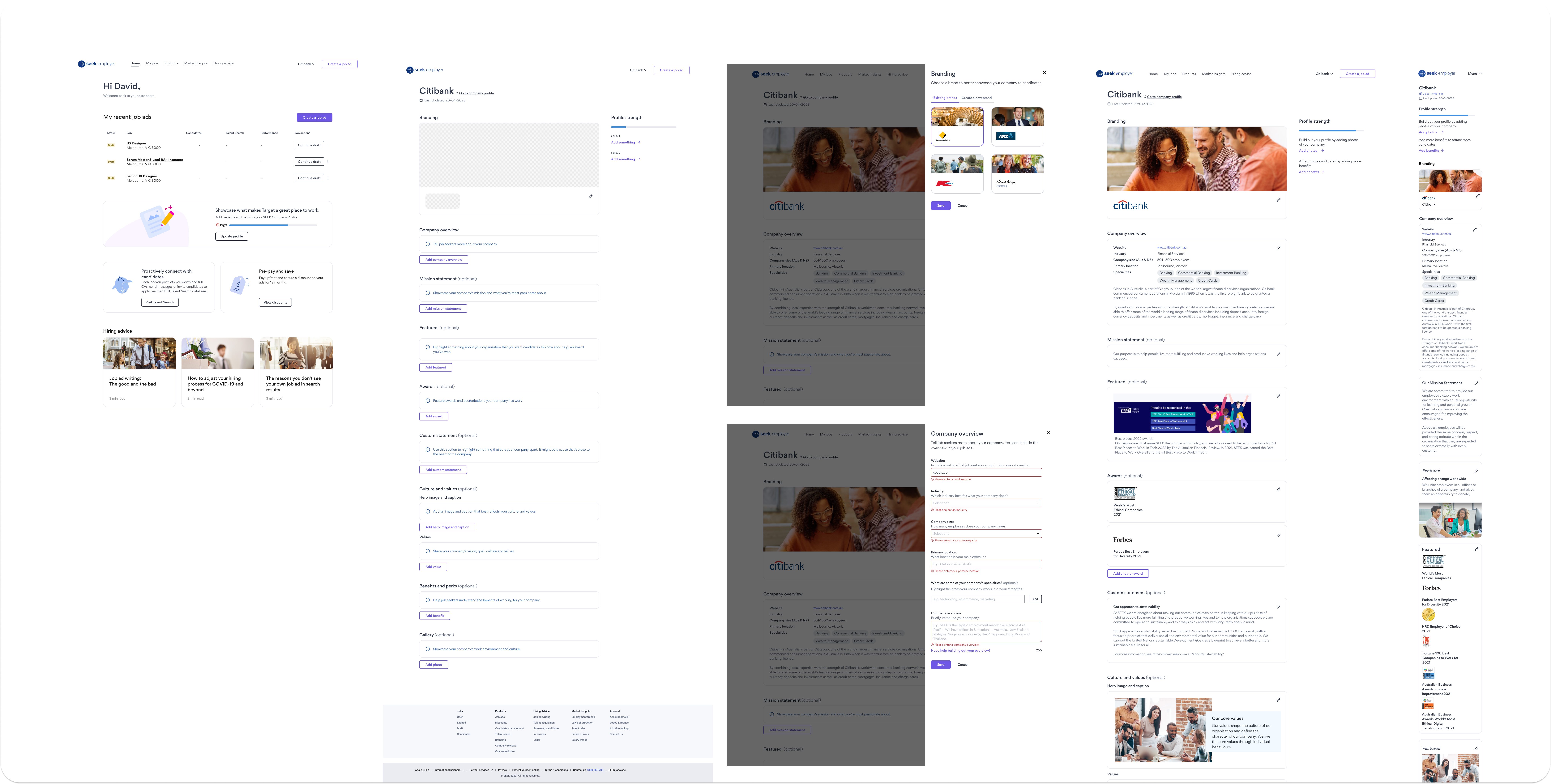 This project aimed to design and deliver a scalable, self-service experience that would unify and modernise how hirers create and manage their company presence on SEEK.